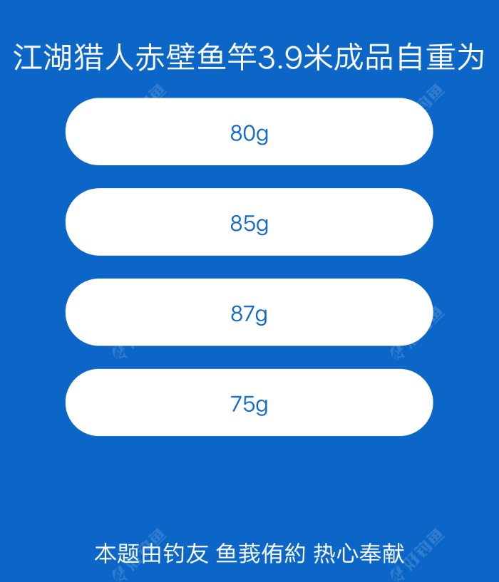 有些人所有的题目都是什么杆多重啊,饵料几克啊。。你咋不把平台所有的商品出一个遍?