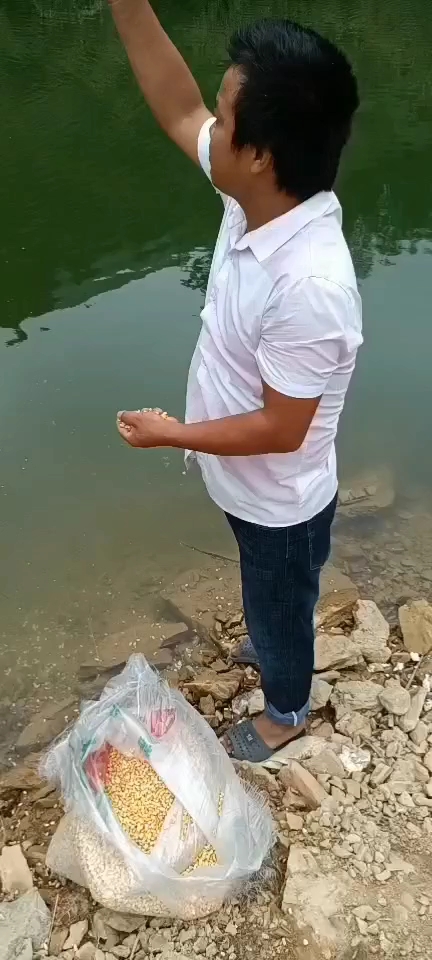 打个大窝,八十斤玉米打完手也酸了。三天后再钓。