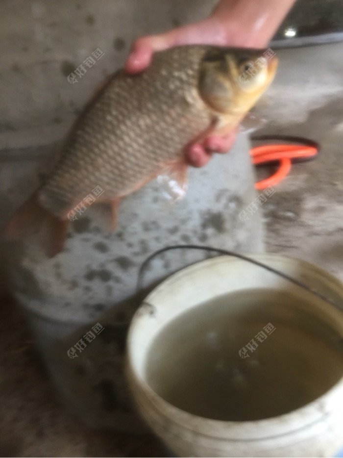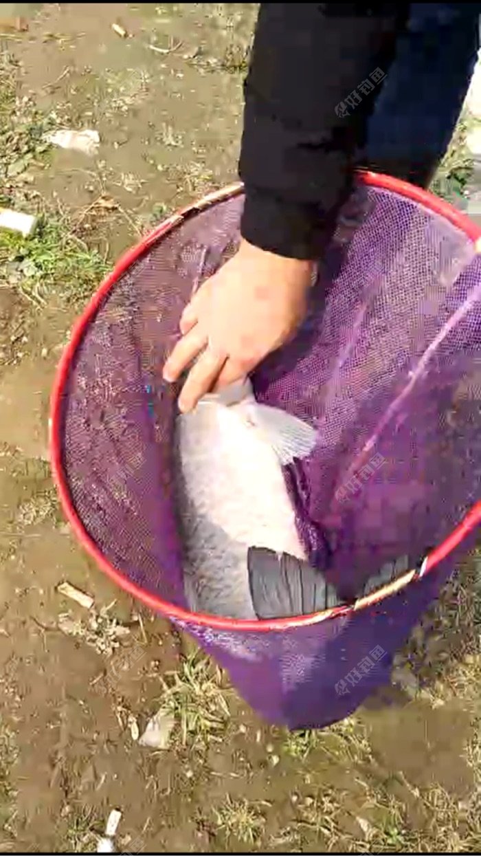 鱼塘里面鲫鱼起步每条一斤多,听说2斤的也有,坐钓约1个小时上了3条斤鲫,另外拉上岸跑了3条鲫鱼和一条7斤多草鱼,因为主线2.0,子线1.5不敢太用力,所以跑鱼太多?
