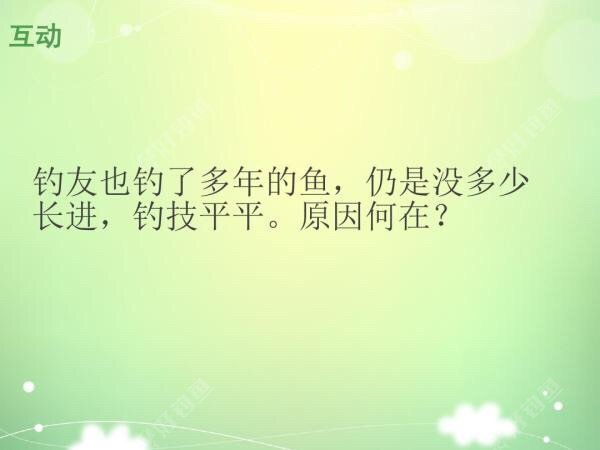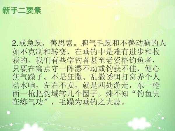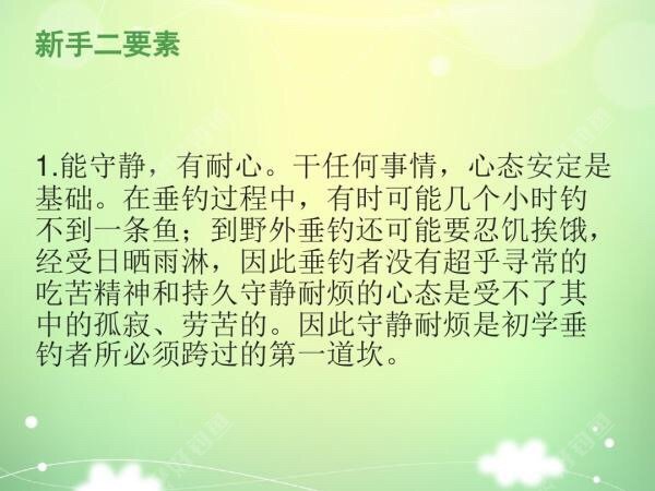 垂钓七急: 当你漫步在徽波荡漾的水边,或柳丝垂岸的小河旁,常常会看到垂钓者或蹲、或坐、或立、或靠。此景此情给人的突出印象是:美、乐、静、慢四个字. 水清如镜,岸生绿色,这当然美不胜收.钓者临场,收获在...