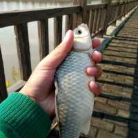 昨晚散步发现一野河,今天起早出发去做钓,顺利开杆上白条,过程紧张又刺激,今天鱼儿活力足,下去一杆又一杆,上鱼一杆接一杆,各种鱼儿来报道,就差黄军没现身,今天鱼护忘拿了,谁想居然爆桶了,哈哈,钦此~~~