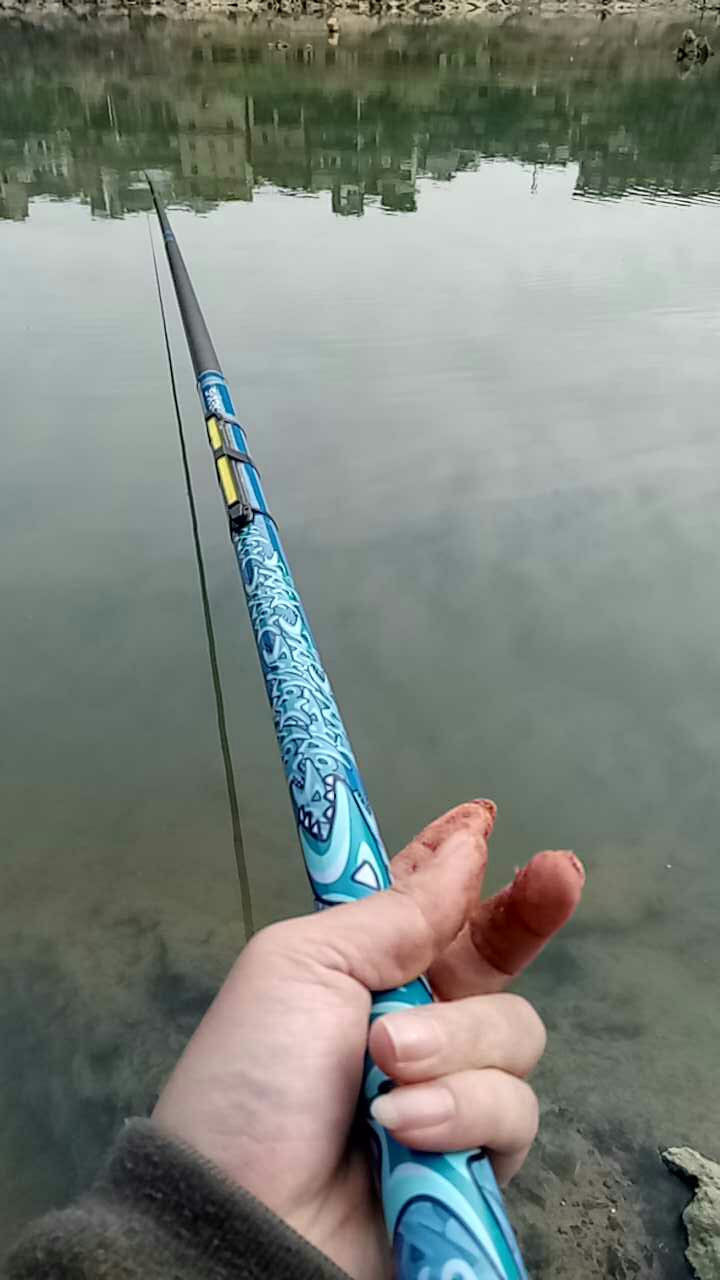 今日早早送老婆来南丹,中午到,在他朋友店里玩了一个中午。很过瘾啊,这样都能爆护,当地人叫这种鱼钢豆,有只大的叫钢弹。…时间不够。学到特色钓鱼…