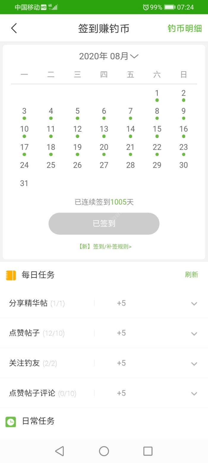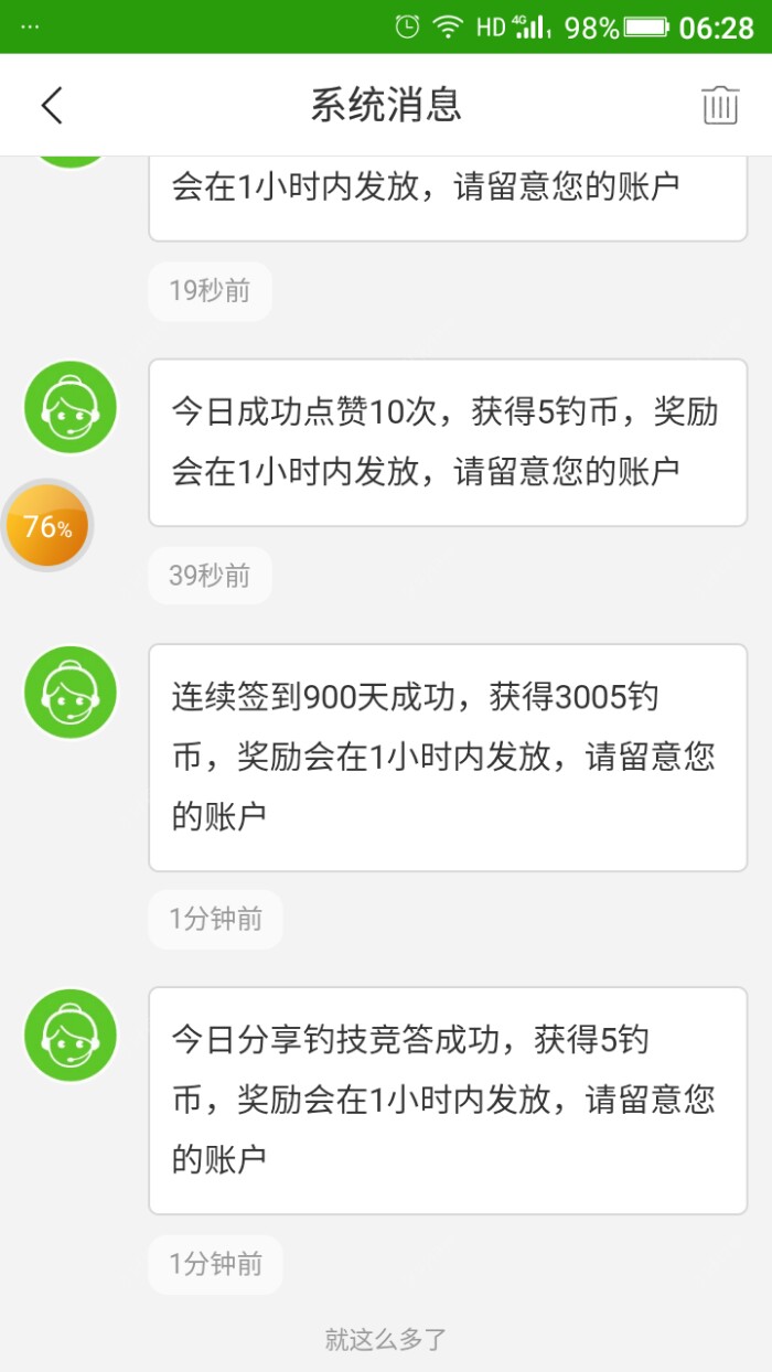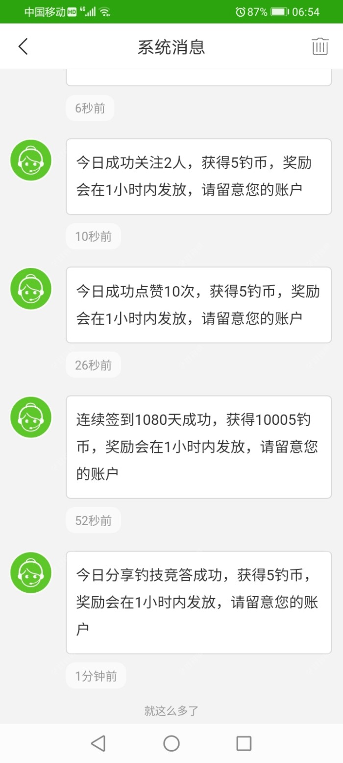 今天刚好三年整,真的不容易,一天没少,贵在坚持吧!这下发了个小财,10000钓币到手!