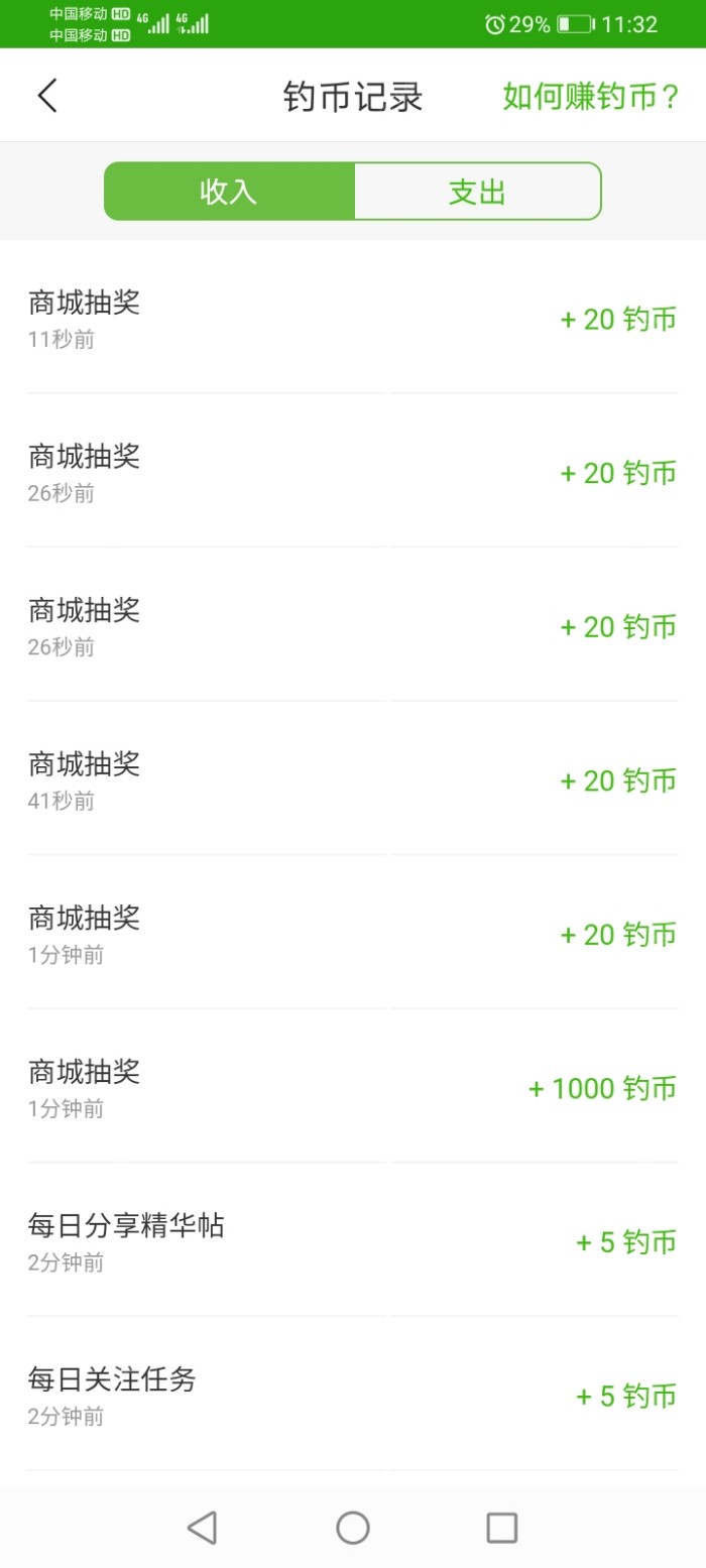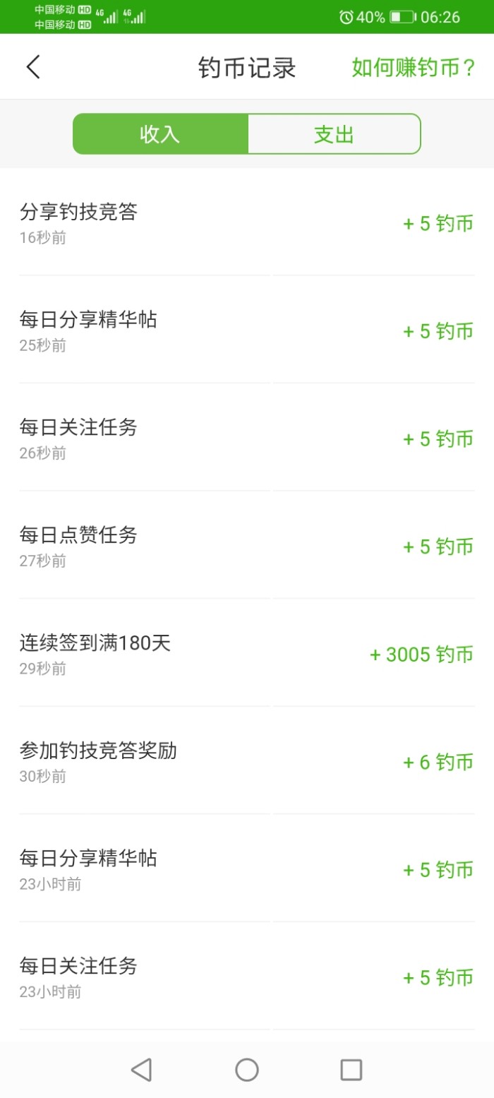 今天五号,钓币才到账,已为没有了呢!坚持最重要,和钓鱼一样,不能着急,耐心,毅力都要有!