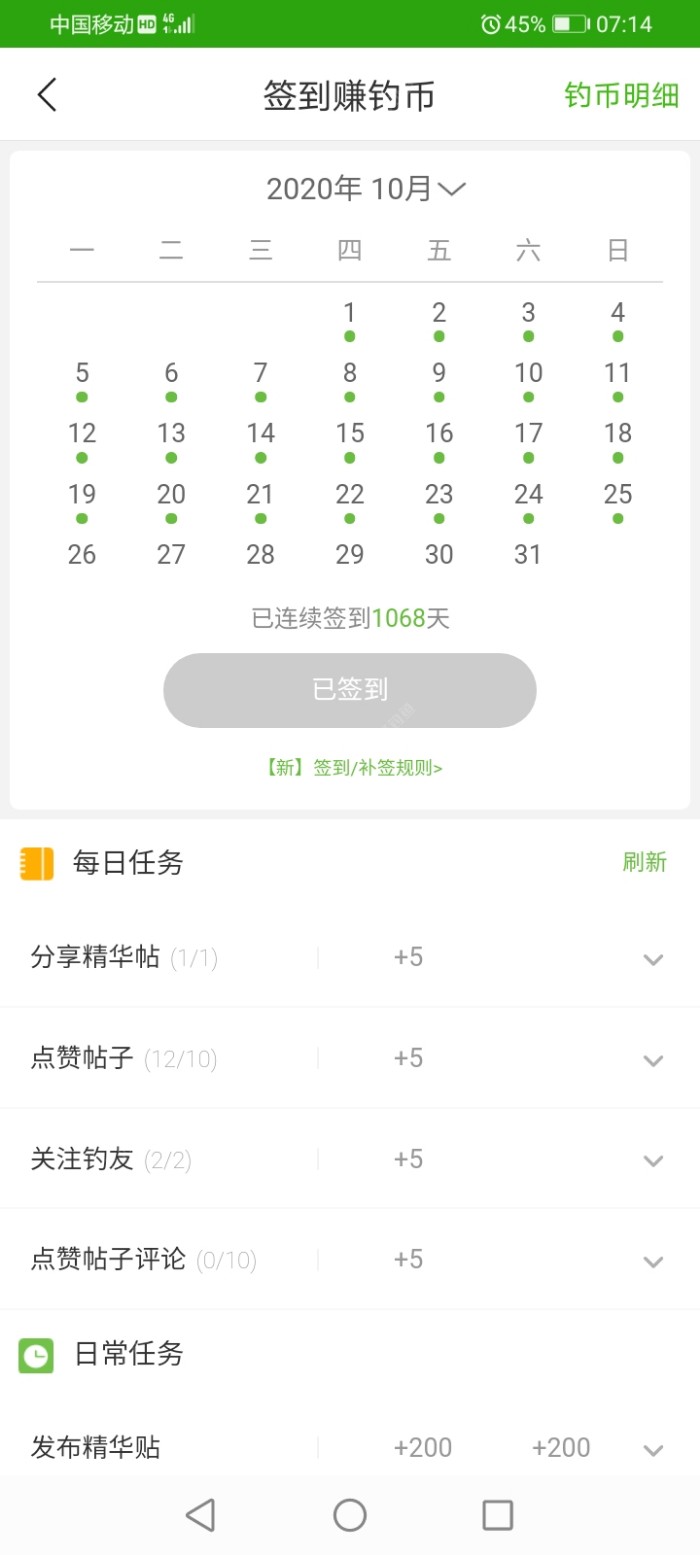 贵在坚持不懈,签到1068天,快三年了,学会了很多,天下钓友一家亲,幸会!