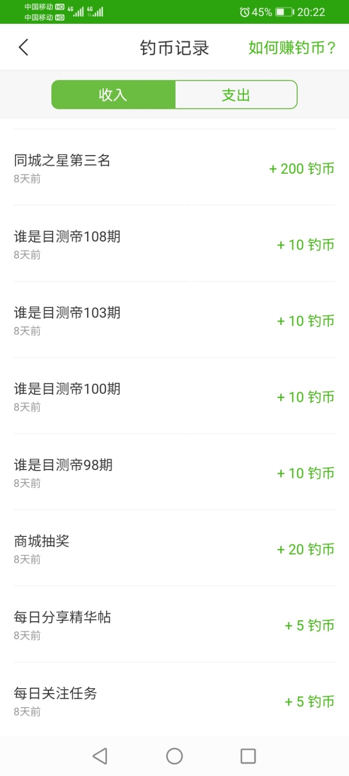 今天刚收到平台给的奖励,三百钓币到帐,又有收入了,呵!下次争取拿下第一,坚持不懈的努力会有回报的!