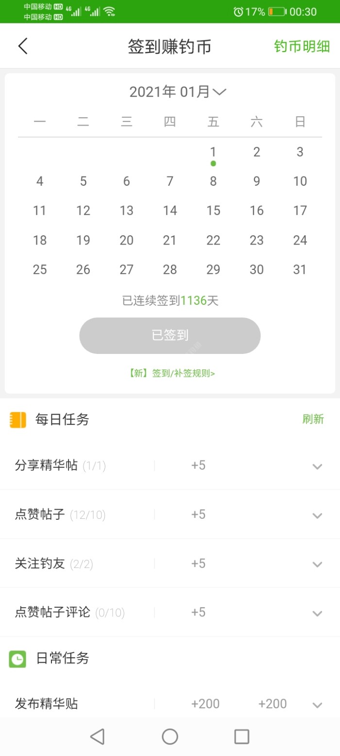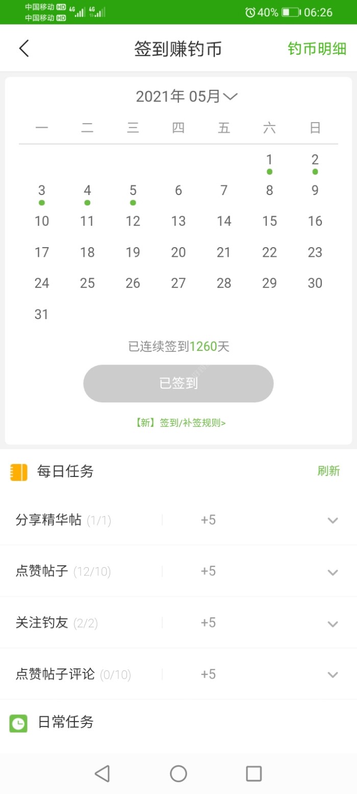 连续签到1260天,奖励钓币3000大洋,高兴了,又是一笔大收入,争取再接再厉,钓友们加油啦!