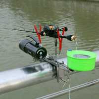 借鉴台钓中,悬坠和双钩两大特点。上鱼信号看竿稍上下抖动。