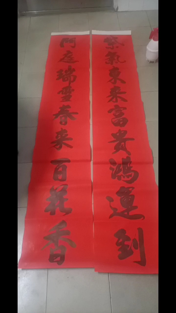春联反复无数次修改最后成型-上联:门庭瑞雪春来百花香,紫气东来富贵鸿运到。横批:春风大雅