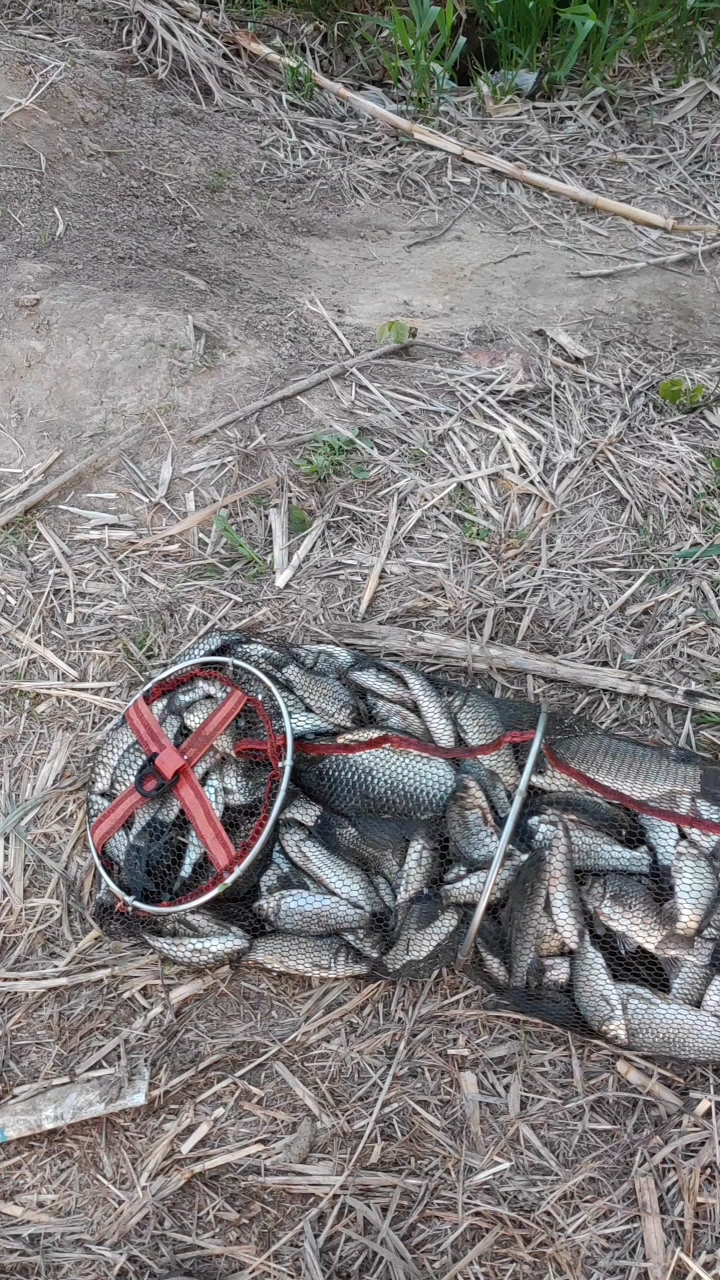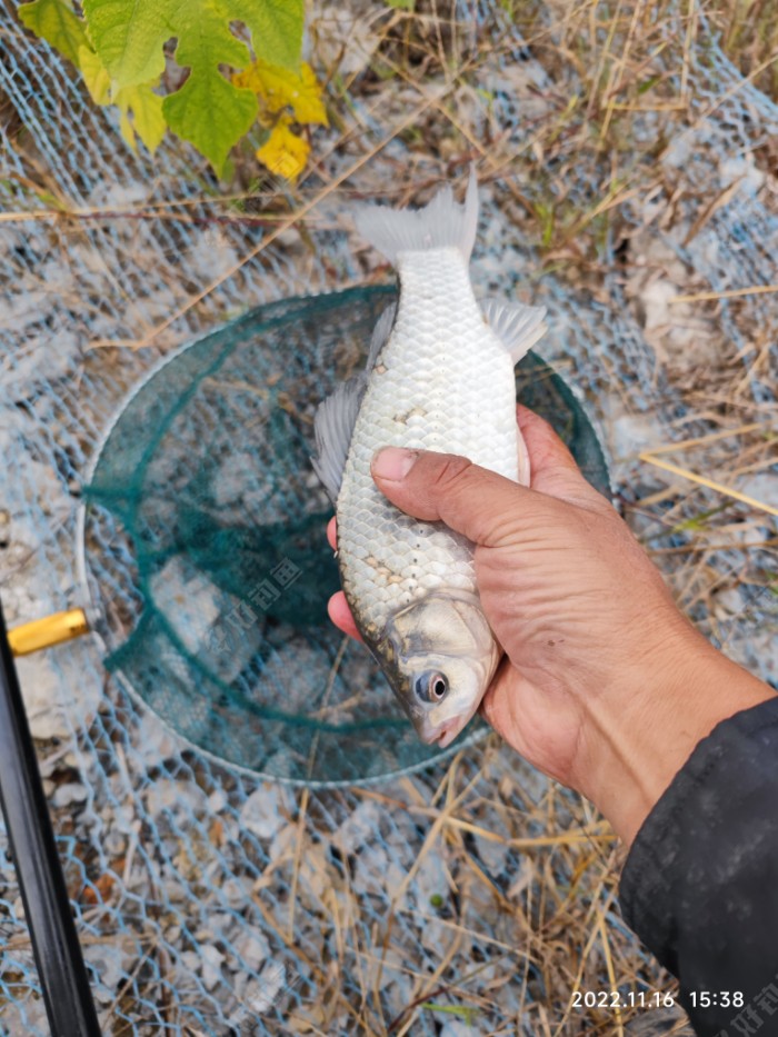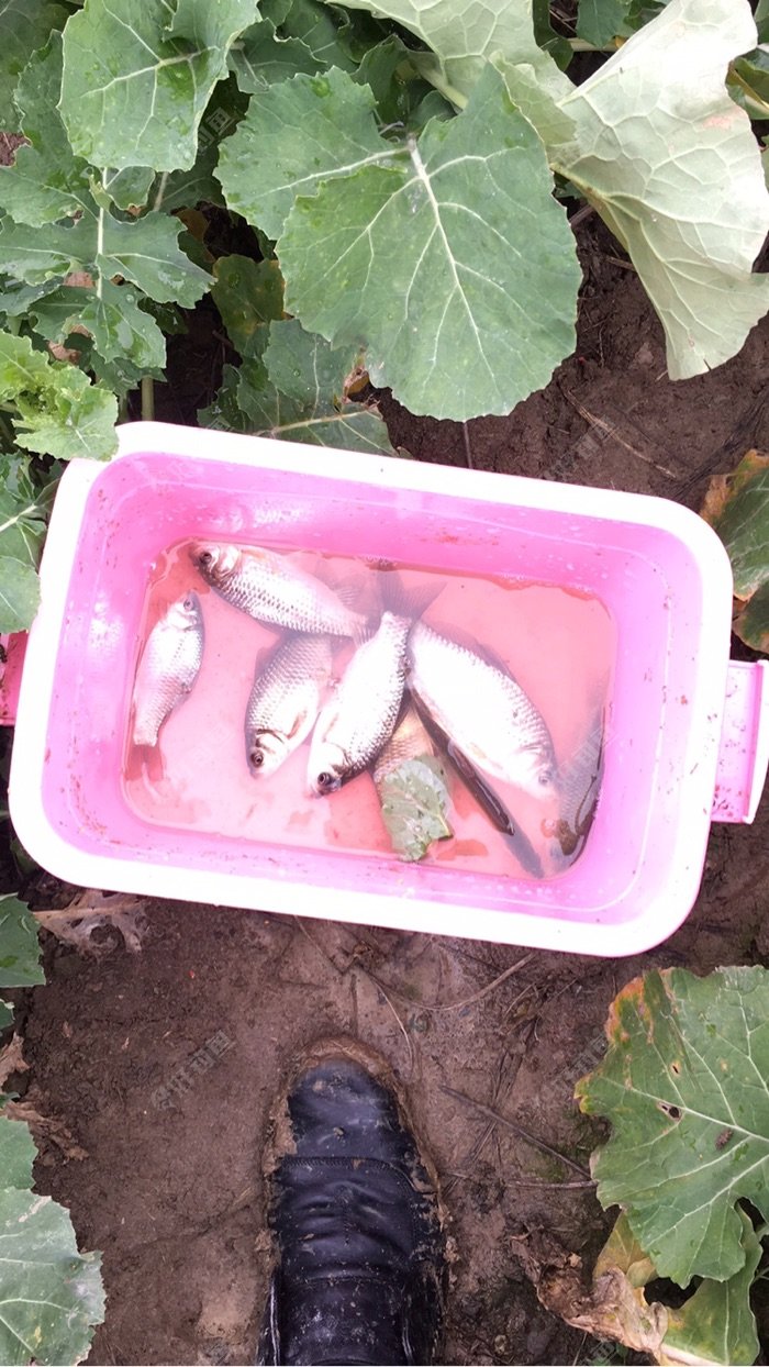 早上八点出发。去一个灌区。现在不让养鱼了 我打了几个窝。到处打游击。窝里没有鱼直接换地方。 全是小鲫鱼。没有一条超过两斤的。