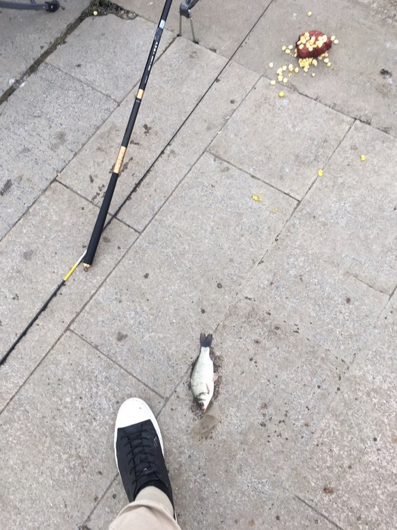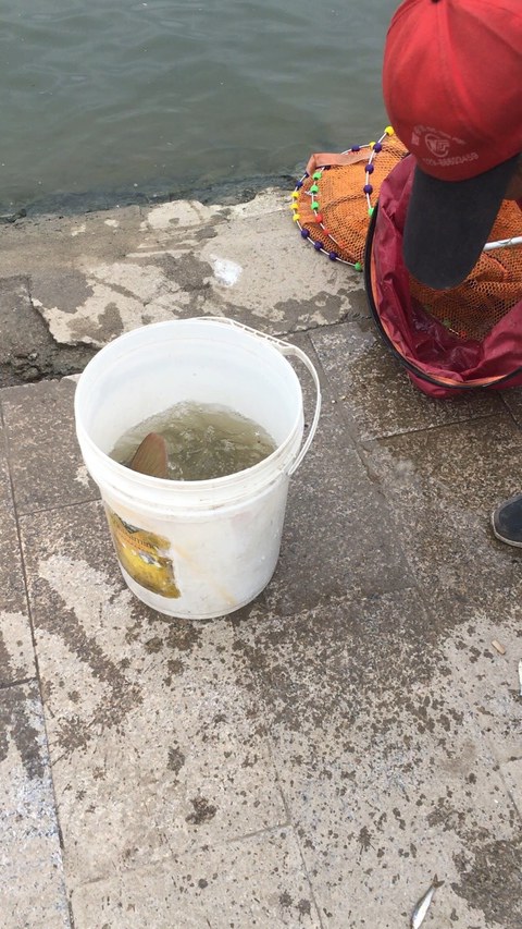 5.4米手杆,玉米,蚯蚓。鲤鱼4斤,鲤鱼4两太多。白条闹窝不好钓。旁边有人海杆拉了10斤的草鱼