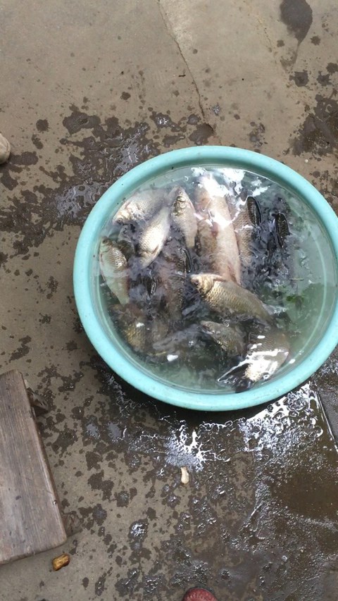 鲫鱼二十多条,最大的半斤多,