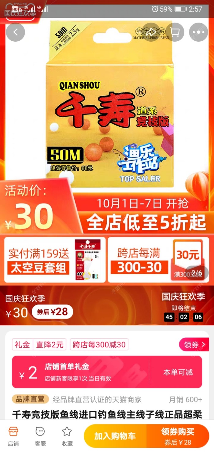 期待着有优惠,想入手一点饵料线组的,结果啥都没有!