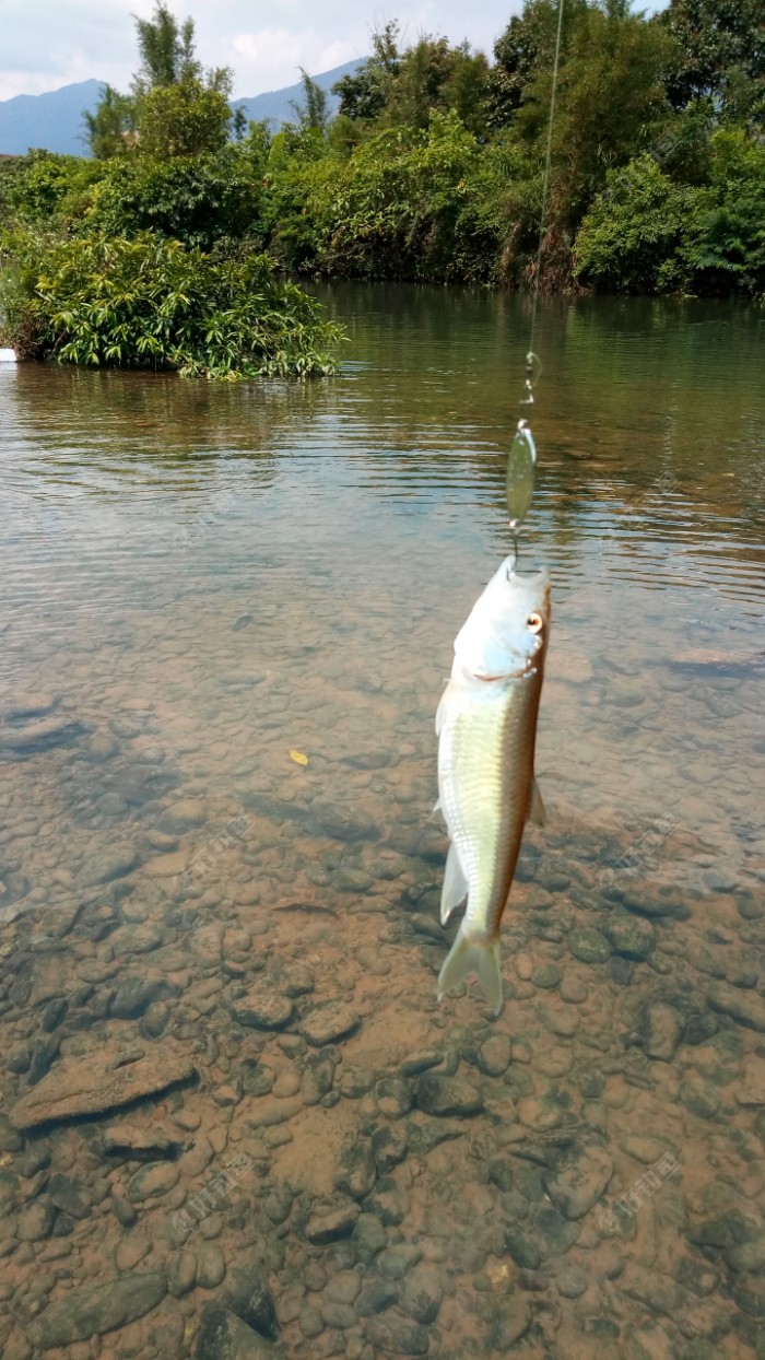 入坑两个月,一直想着怎么路亚上军鱼,每周末都去抛杆子,可惜就是不中!而且最近溪流水位很低,军鱼不上来,没办法。今天早上去新标点一试,喜中军鱼两尾,虽然比较小,但也很开心了