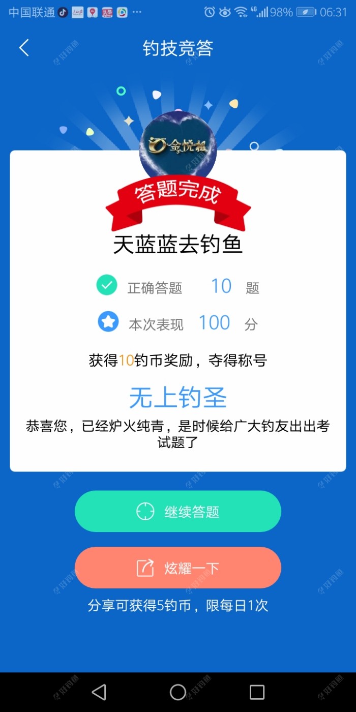 好长时间都没有钓鱼了,每天只能,来平台看看,钓友们,答题解毒。今天真是厉害?