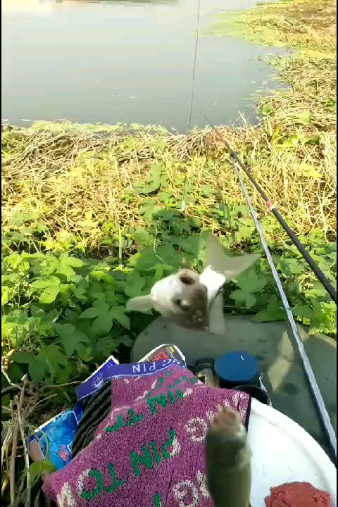 今天运气还不错上了3条鲫鱼,竟然上了一条大板鲫??但是中途脱钩了一个大的应该是,这是今天的鱼获