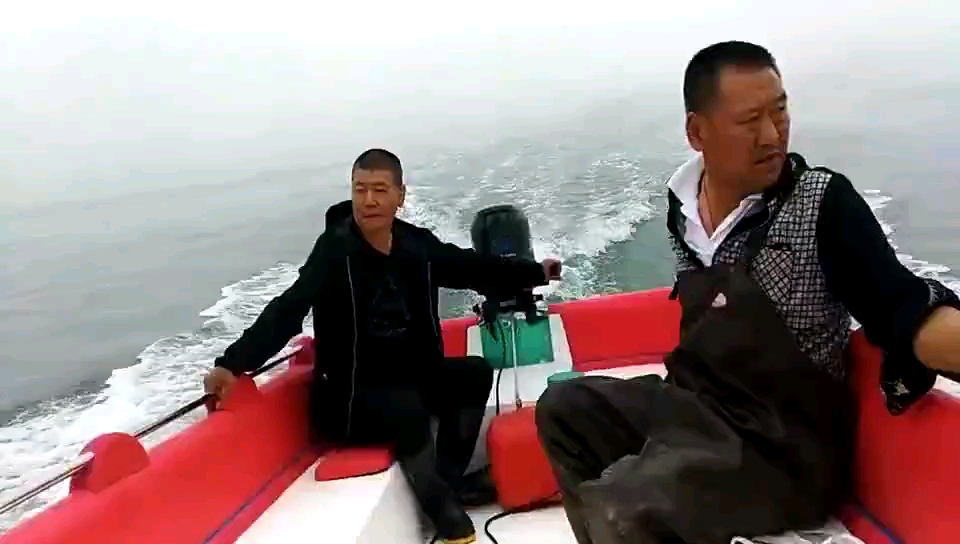刚买的高聚钓鱼船,和钓友在胶州湾试船!心情无比的高兴!
