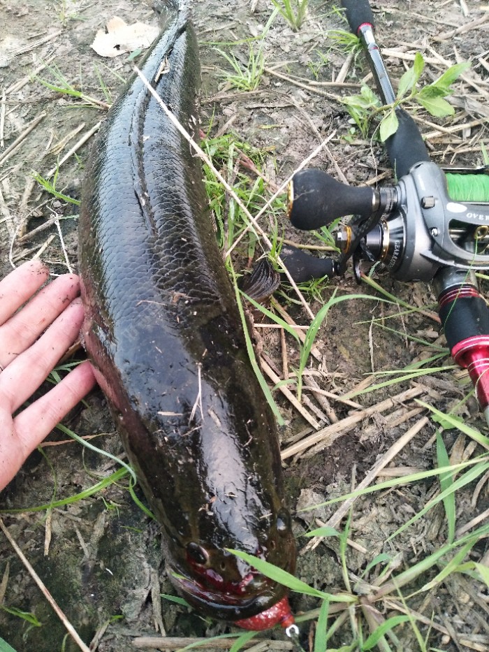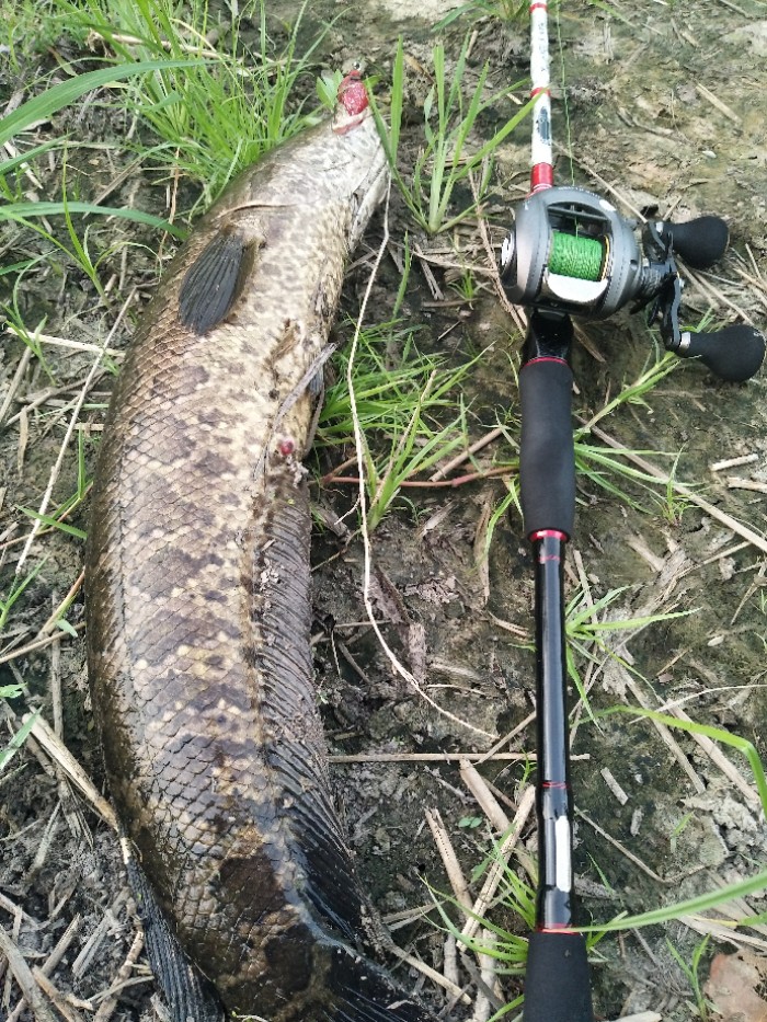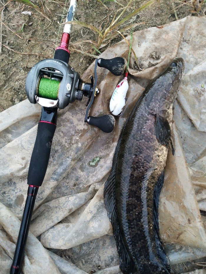 最近迷恋上打黑,喜欢听黑鱼那爆口声!一发不可收拾。这不一下夜班就直奔雷场,上次在这里抽飞两条只弄上来一条,今天再来碰碰运气,七八竿后当蛙刚过水花生那里的时候砰的一声爆口,用的蛋型蛙,等了大概三秒线被黑...
