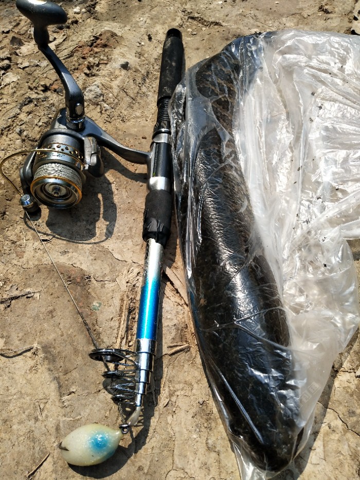 纺车轮上的线有点老化了,(本来就便宜六块五包邮)前几天刺鱼的时候线断了,这几天没敢再继续用,就拿着这个水滴轮和抛竿混搭?,有利有弊,这种小水域周围障碍比较多的地方软一点的杆子很好抛投,这个点连家里的卧...