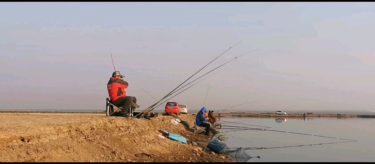 一个野钓场,人多的和竞技比赛似的。