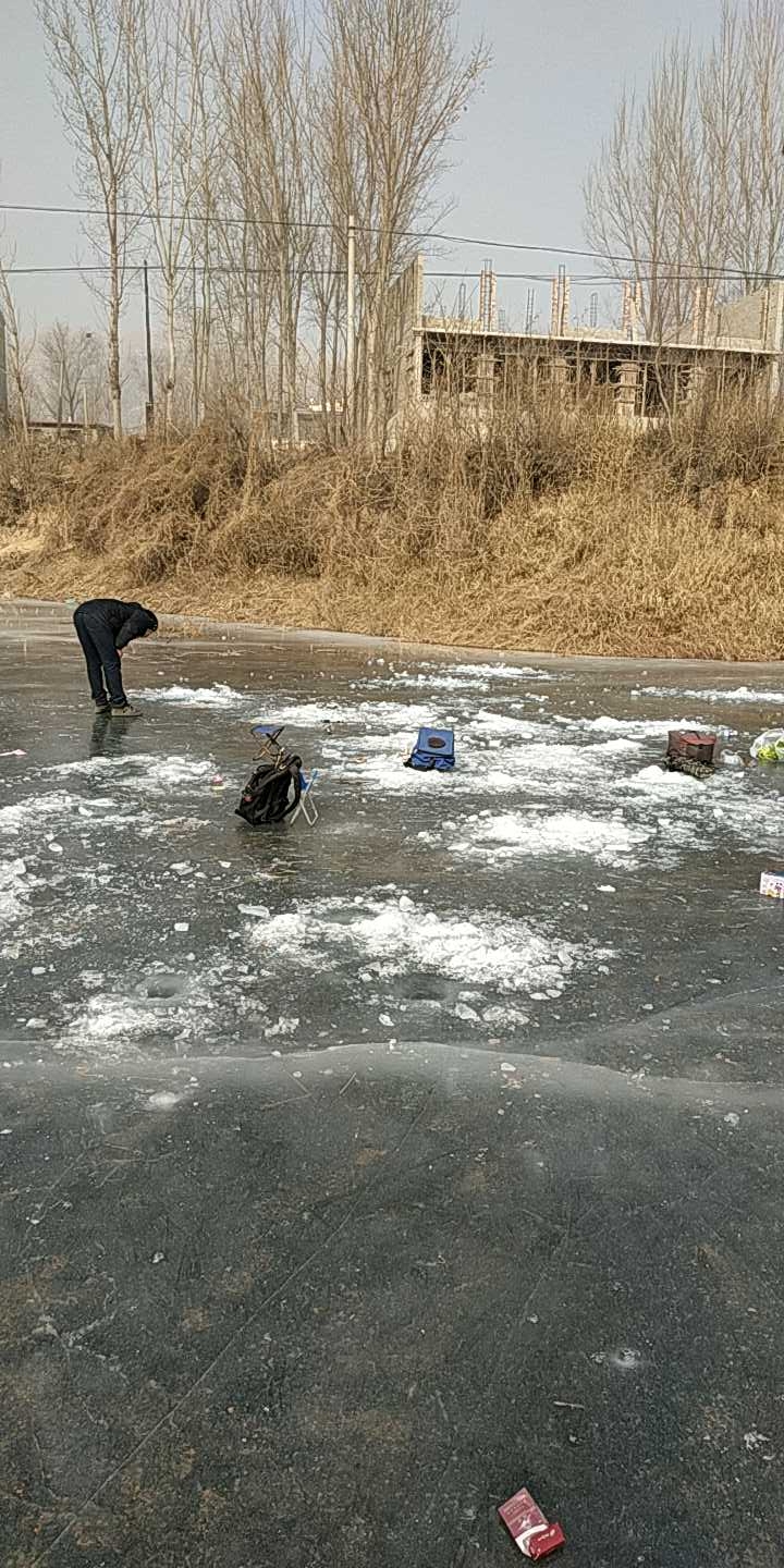 进入三九天儿冷了,好久没钓鱼了,向来喜欢野钓的我,实在按耐不住心底钓鱼的瘾。于是约起钓友冰钓,和钓友一拍即合,出发西大洋水库。驱车二十来分钟,到达目的地,远远望去白茫茫一片,靠近岸边不远的冰面上已经有好多钓友在战斗着呢。我们背起装备直奔战场,询问战斗中钓