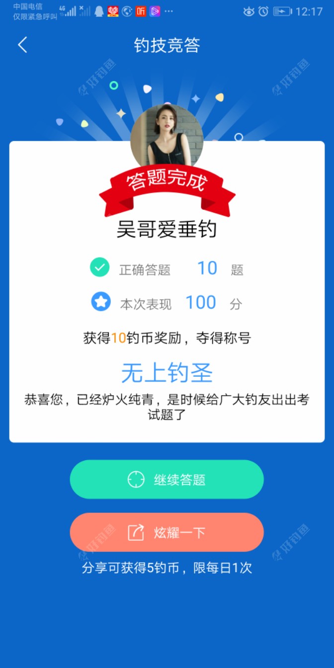 竞答里的题目,出题的思维乱七八糟的, 今天碰到这么一题;路亚能不能钓到鲤鱼 1 否 2能 3有可能 4 用亮片可能 答案是4,我想说3为什么不对,经不起推敲的就别发了。 手竿空钩调漂还碰到过呢