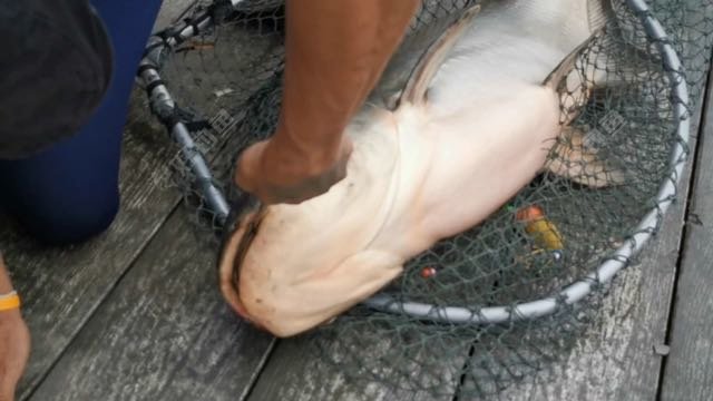 FWB。曼谷的湄公鲶都饿疯了。咬钩咬的特别深。