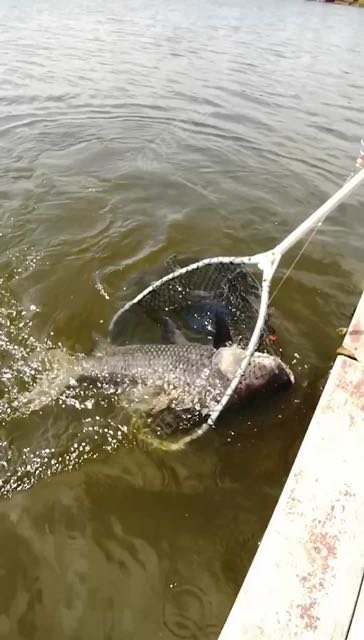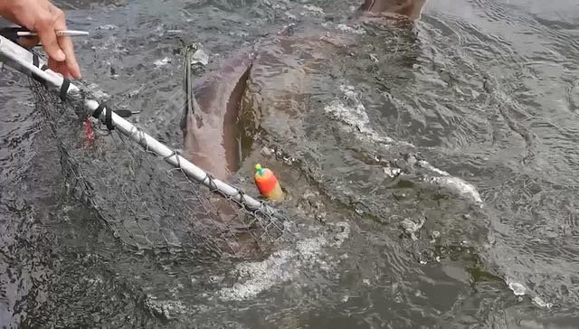 湄公鲶真的很重,我们的女钓手有点抱不动~