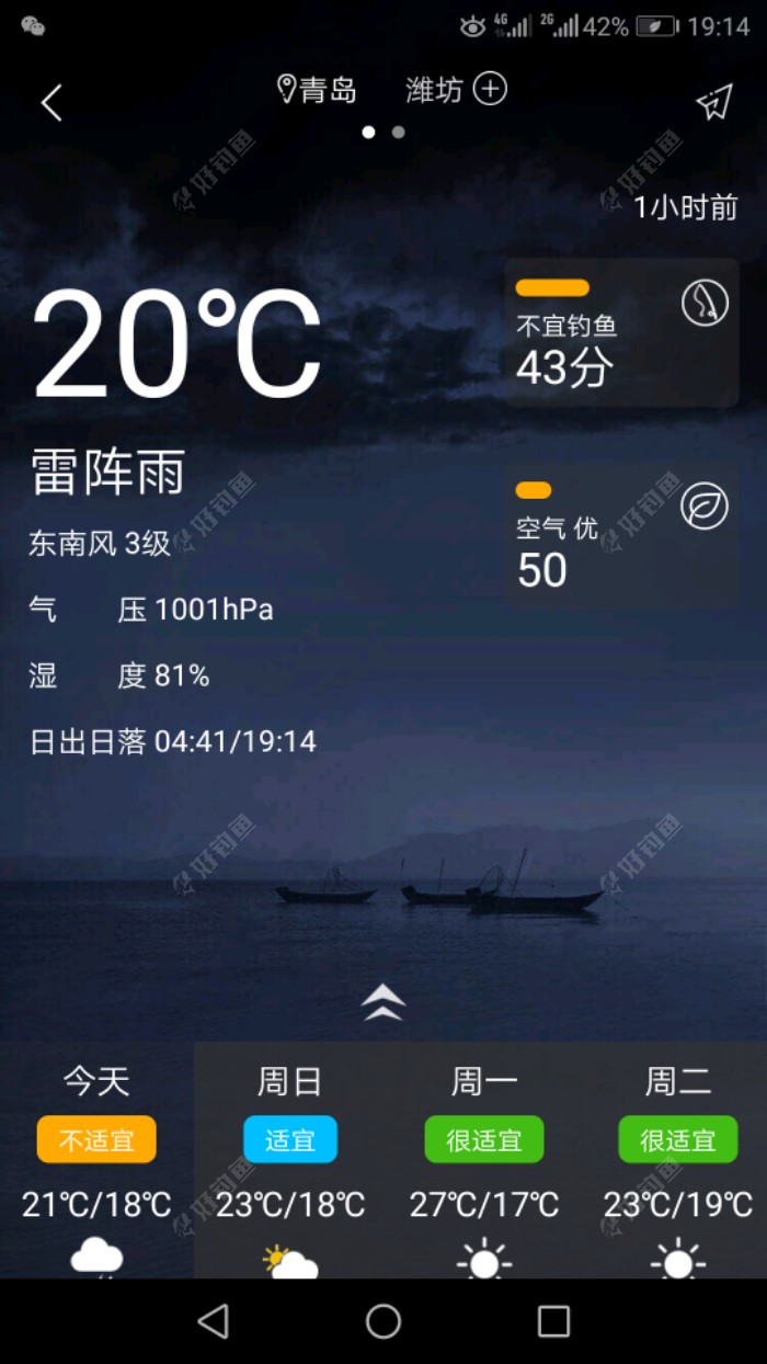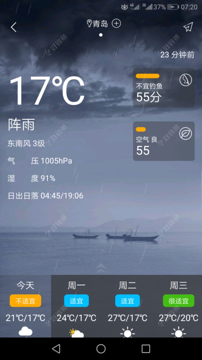 这个天能钓鱼吗?杆都让风刮倒了,炮台也支不住,天气预报也不一样,我该听谁的,该不该去钓鱼?~~