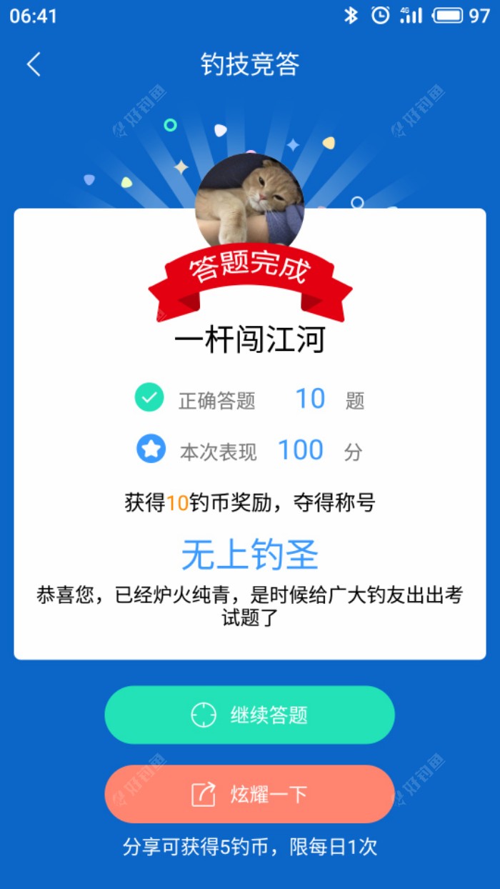 满分对我来说真的很难啊,除了台钓的好多都不懂啊,看来还有很长的路要走啊