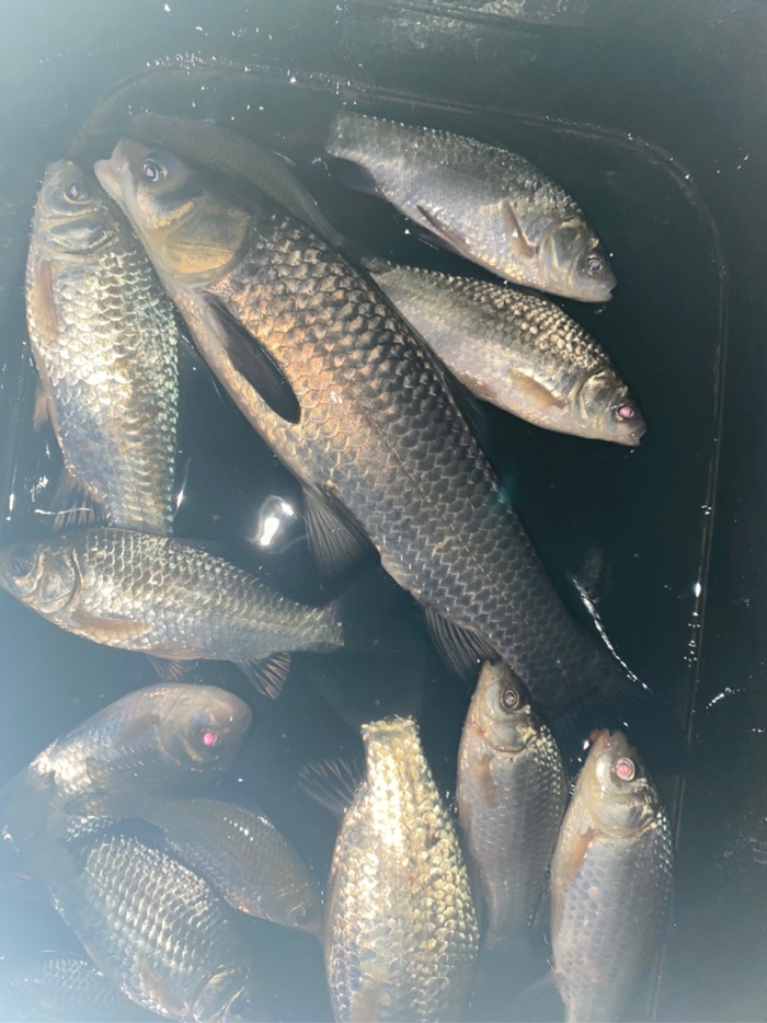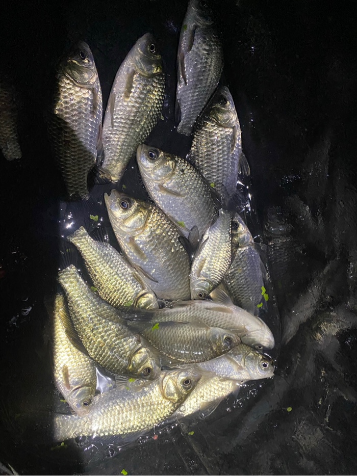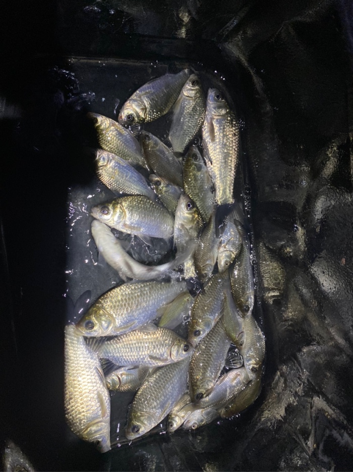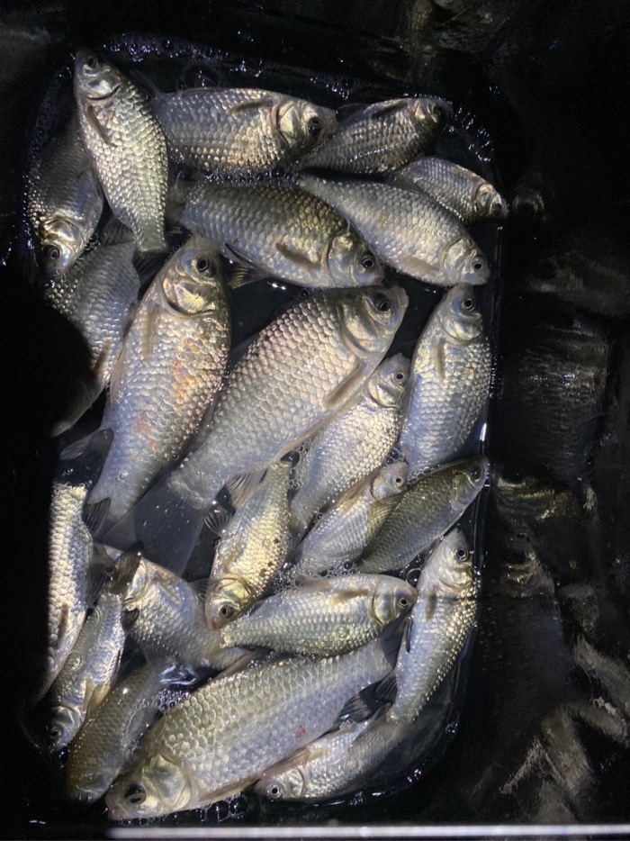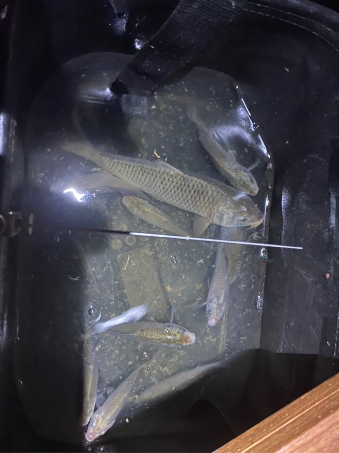 最近公司忙,钓鱼时间也少了,降温温差大,刚好晚上不加班去河边钓会,3.6短竿,0.8+0.3 三号袖主攻小鲫鱼,七点多到河边快八点才有口,十点多点收工,小鲫鱼几十条。