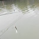 今天早上五点左右出来,走到河边风好大。没有办法。昨天晚上没有夜钓,只好一早起来钓一会儿。鱼获还可以。