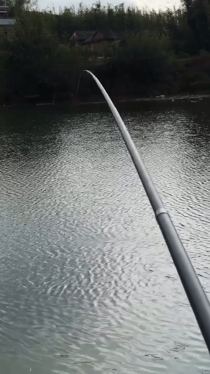 早上十一点去到离家不远的水力发电站看到一个位置地上很多烟头应该是一个老钓点本来以为钓不到鱼的只是随随便便带了一支杆带了把雨伞连抄网鱼护都没有带?撒了一些黑蚯蚓颗粒做窝料,就开始作钓,水非常急,就用跑铅~刚抛下去不久、就来了一个小黑漂立马提竿中鱼!河里的鱼比