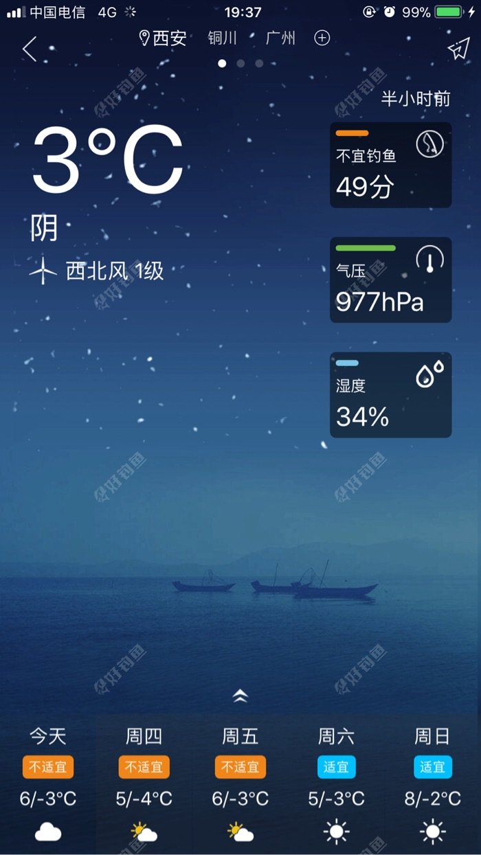 天气预报可是咱钓鱼人最关心的,上不上鱼天气是前提。今天出钓有一个光荣的任务,就是要给新竿开光破处。 连续签到近一年,一时疏忽漏签酿惨剧,就差30天,就差30天,就差30天就满一年可以拿大奖了。结果漏签...