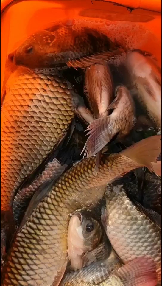 星期天的鱼获吧。鲤鱼直接把鱼竿拉到江中间去了