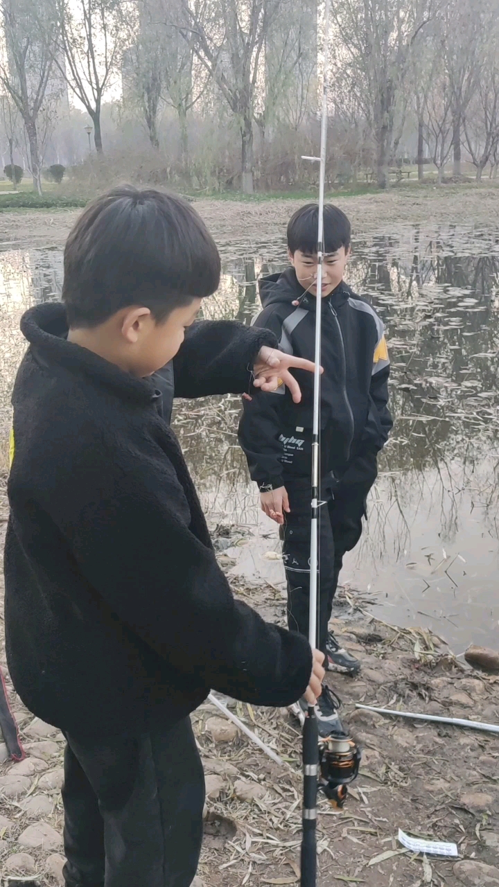 公园转一转,发现两位小钓手,钓鱼事业后继有人!一定会长江后浪推前浪哦!