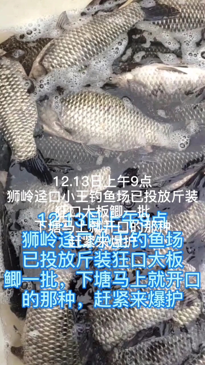 12.13日狮岭迳口小王钓鱼场投放狂口斤装大板鲫一批