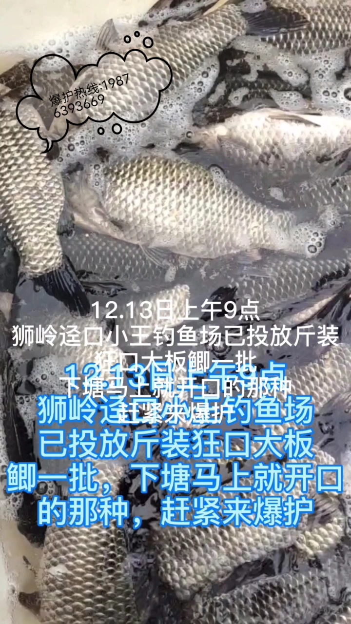 12.19日迳口小王钓鱼场已投放斤装狂口大板鲫一批,欢迎大师前来爆护