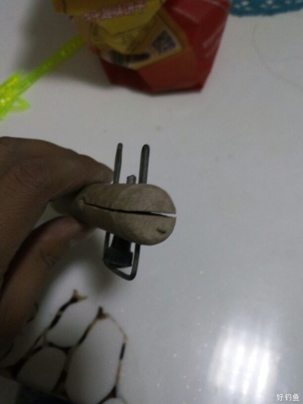 用圆木,半节锯条,螺丝,铁丝,电钻