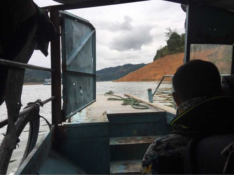 终于到万峰湖了,现在是下午2.30分在座船去钓棚的水路