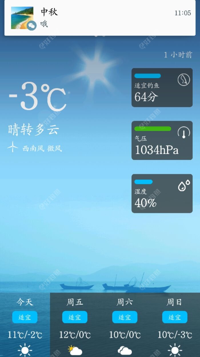 早上送孩子去上学 孩子说 今天是圣诞节 圣诞节!和我没关系 那不是中国的传统节日 平安夜?我只知道是我们的子弟兵在守护着我们的平安 思想跑的有点远 还是去钓鱼吧 收拾装备出发 看看好钓鱼给的天气预报 ...